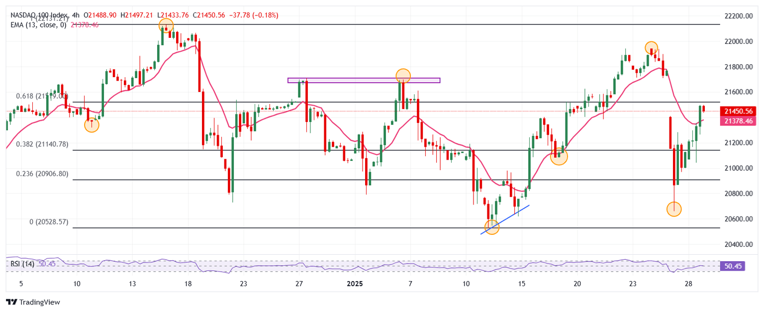 - El Nasdaq 100 sube un 1.66% el día de hoy, operando actualmente en 21.477.