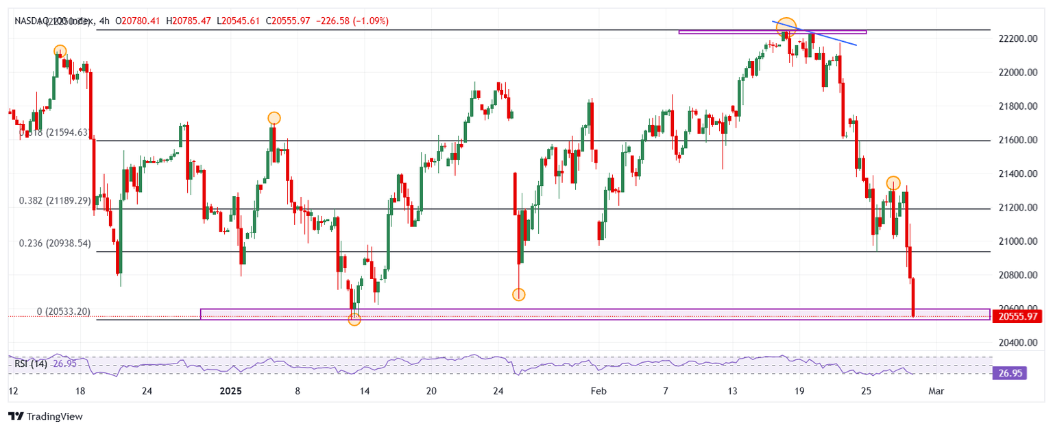 El Nasdaq 100 marcó un máximo del día en 21.329, atrayendo vendedores agresivos que arrastraron el índice a mínimos no vistos desde el 13 de enero en 20.545. En estos momentos, el Nasdaq 100 opera sobre 20.555, perdiendo un 2.74%.