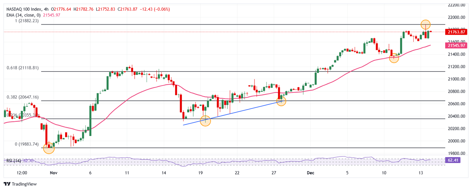 El índice tecnológico Nasdaq 100 sube un 0.77% en la jornada del viernes, estableciendo un nuevo máximo histórico en 21.882.