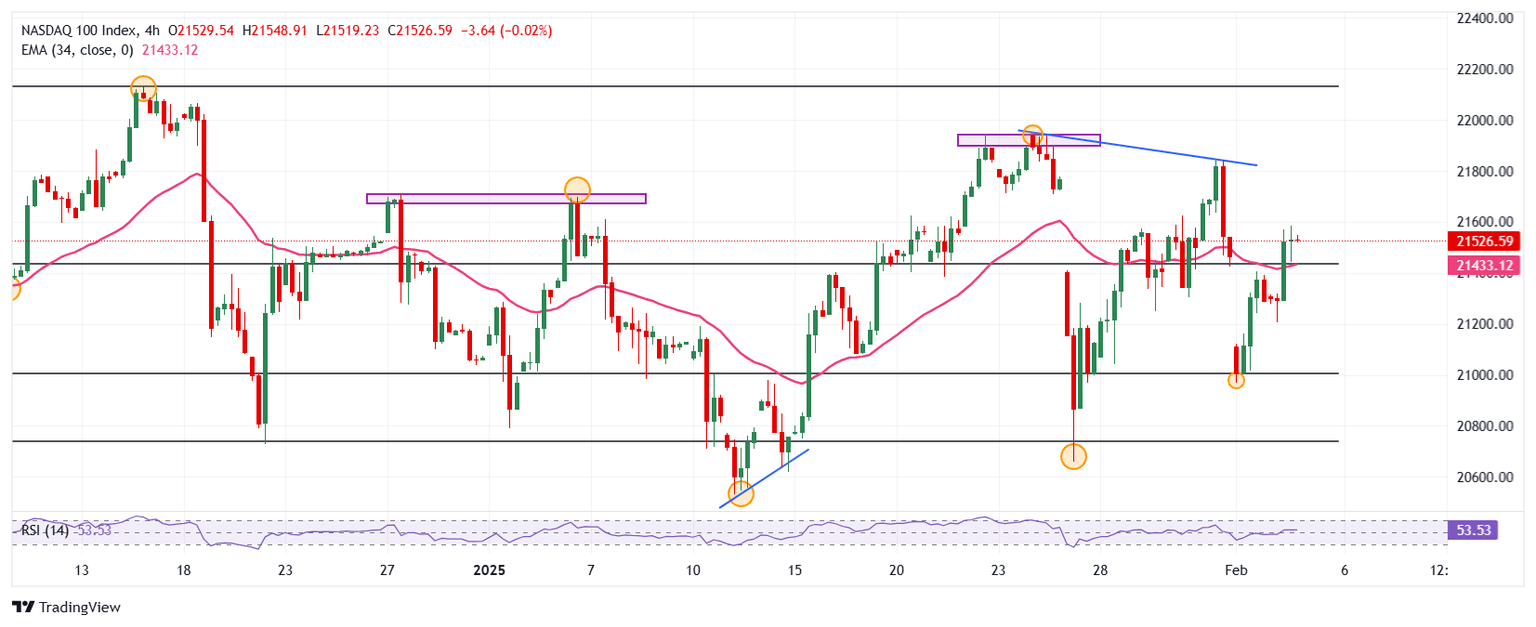 El Nasdaq 100 estableció un mínimo diario en 21.207, atrayendo compradores que impulsaron el índice tecnológico a máximos no vistos desde el 31 de enero en 21.584. Al momento de escribir, el Nasdaq 100 opera en 21.540, subiendo un 1.20% diario.
