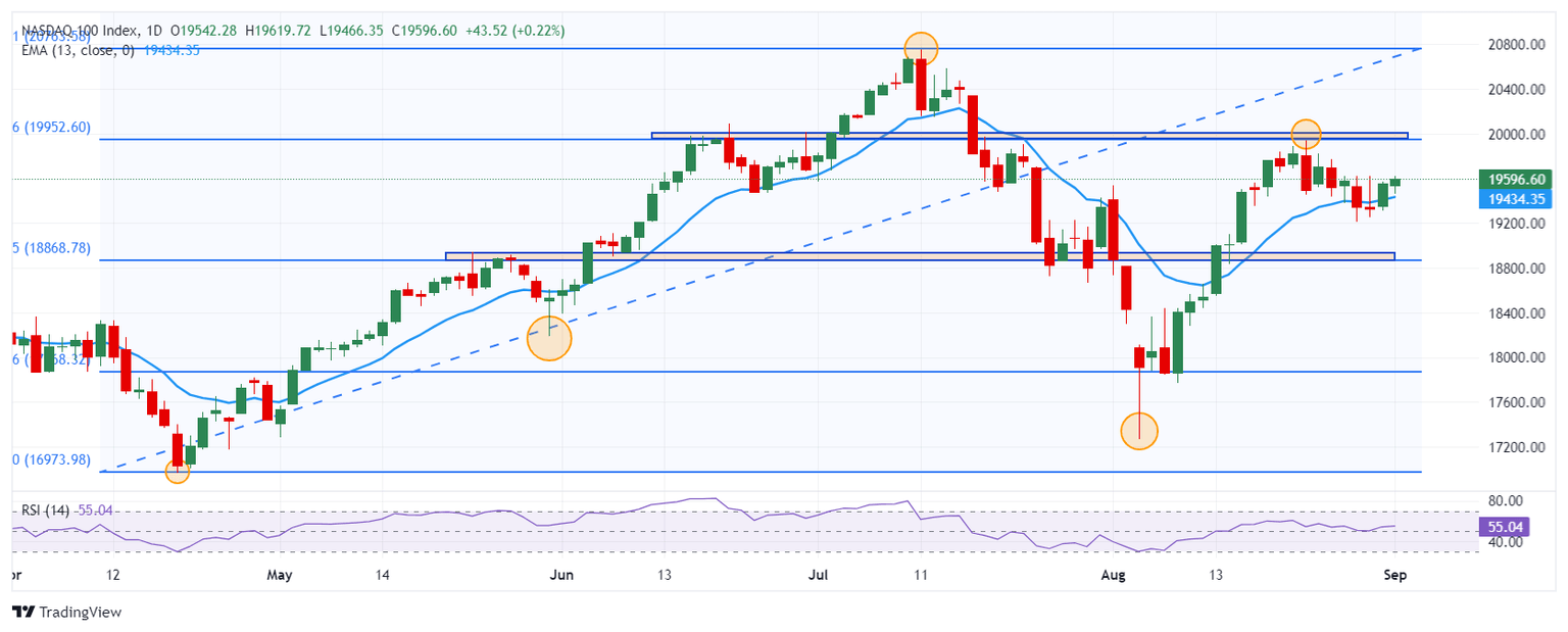 El Nasdaq 100 mantiene la perspectiva alcista en una sesión con escaso volumen por la celebración del Día del Trabajo en Estados Unidos. Los inversionistas tendrán el foco en el Índice Manufacturero PMI que se dará a conocer el día de mañana, en el cual se espera un crecimiento a 47.5 en agosto desde un 46.8 registrado en julio.