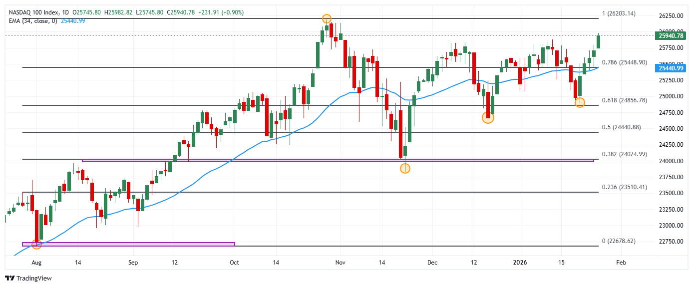 - El Nasdaq 100 gana un 0.90% en la jornada del martes, llegando a máximos no vistos desde el 3 de noviembre de 2025 en 25.982.