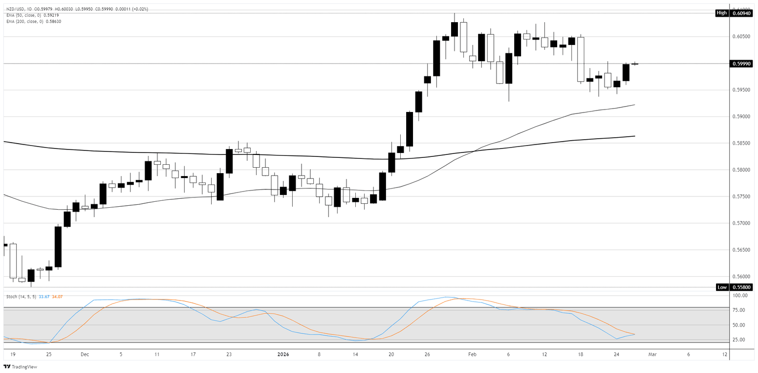 - El Dólar neozelandés se mueve para recuperar 0.6000 a medida que el Dólar estadounidense se debilita por la incertidumbre en la política comercial posterior al Estado de la Unión.