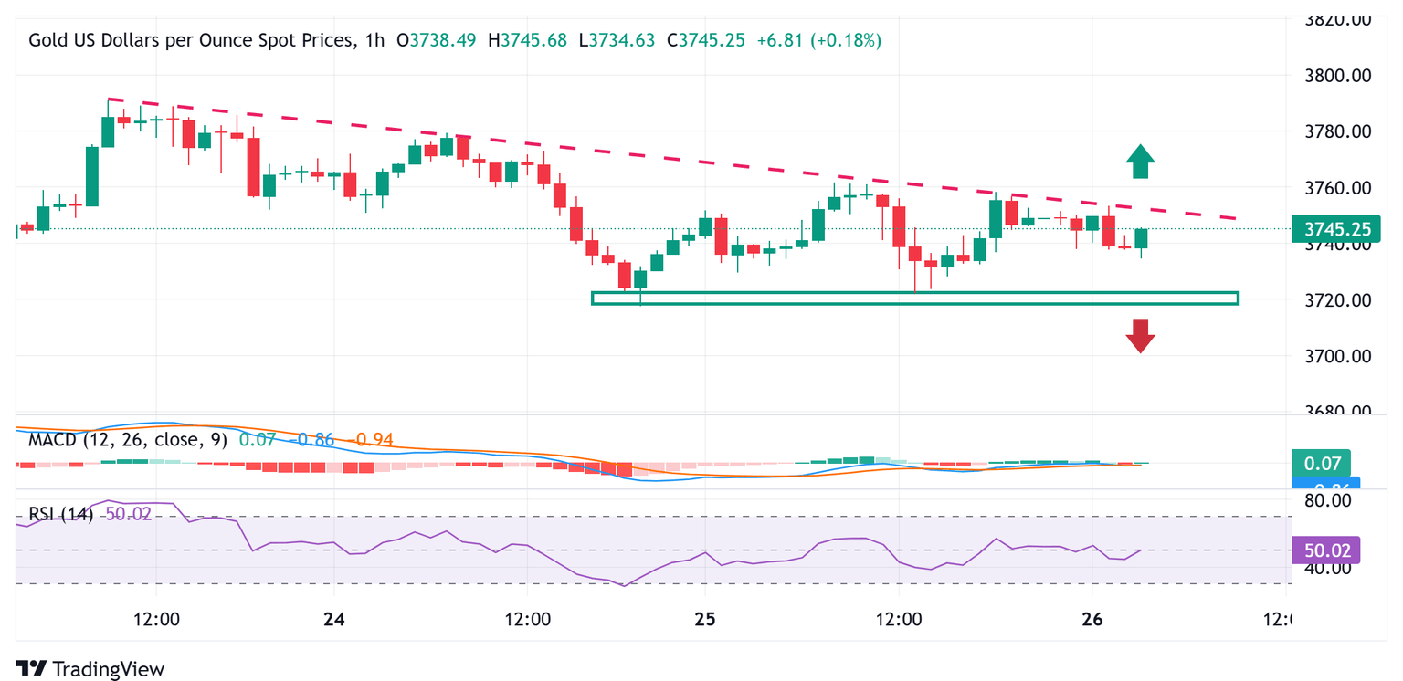 El Oro (XAU/USD) se vuelve positivo por segundo día consecutivo tras una caída intradía a la zona de 3.734$ y toca un nuevo pico diario durante la primera mitad de la sesión europea del viernes. Sin embargo, la mercancía permanece confinada en el rango de negociación más amplio del día anterior, ya que los operadores optan por esperar la publicación del Índice de Precios del Gasto en Consumo Personal (PCE) de EE.UU. antes de abrir nuevas posiciones direccionales.