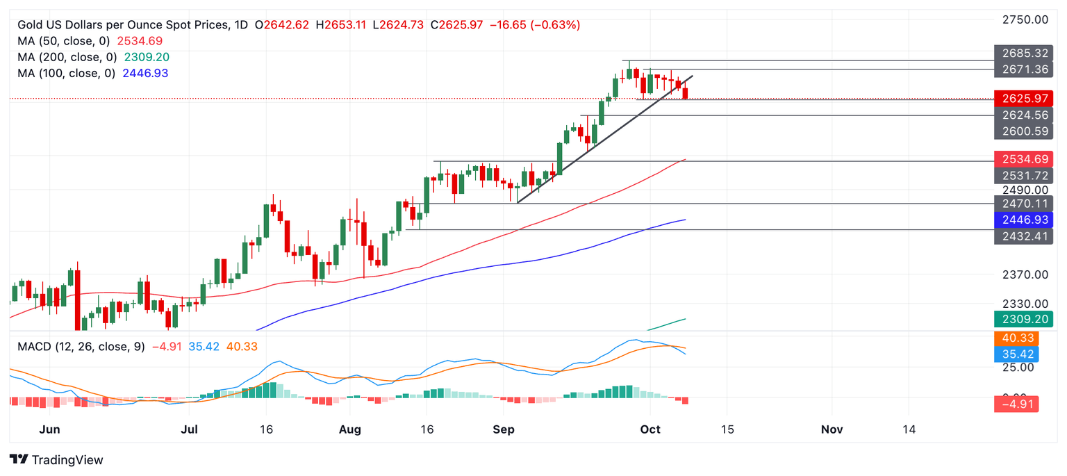 El Oro (XAU/USD) se negocia en 2.620$ el martes mientras el metal amarillo alcanza el suelo de su familiar rango de 50$ de las últimas semanas.