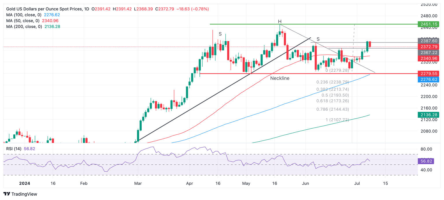 El aumento de los rendimientos de los bonos del Tesoro estadounidense, como resultado de las mayores probabilidades de que el expresidente Donald Trump pueda ganar las próximas elecciones presidenciales en noviembre, también puede estar debilitando al Oro. Se espera que Trump recorte impuestos pero mantenga el gasto, lo que llevará a una mayor inflación y tasas de interés más altas, lo cual es negativo para el activo sin rendimiento de intereses que es el Oro.