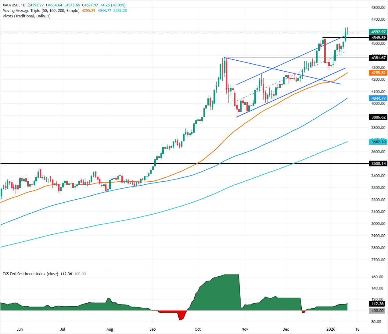 Para una continuación alcista, el Oro debe superar los 4.650$. Por el contrario, si el XAU cae por debajo de 4.550$, esto podría alentar a los vendedores a empujar los precios de nuevo hacia el mínimo intradía de 4.500$, con el umbral de 4.400$ emergiendo como el próximo objetivo clave a la baja.
