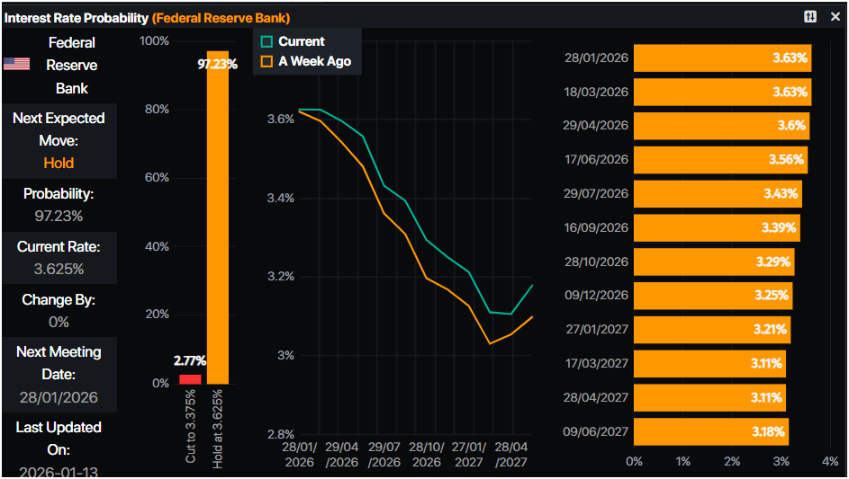 Los mercados monetarios habían descontado 50 puntos básicos de relajación hacia finales de año, según Prime Market Terminal. Sin embargo, durante el fin de semana, los desarrollos sobre la acusación del Departamento de Justicia contra el presidente de la Fed, Jerome Powell, una amenaza a la independencia de la Fed, redujeron las posibilidades de un recorte de tasas en la reunión de enero.