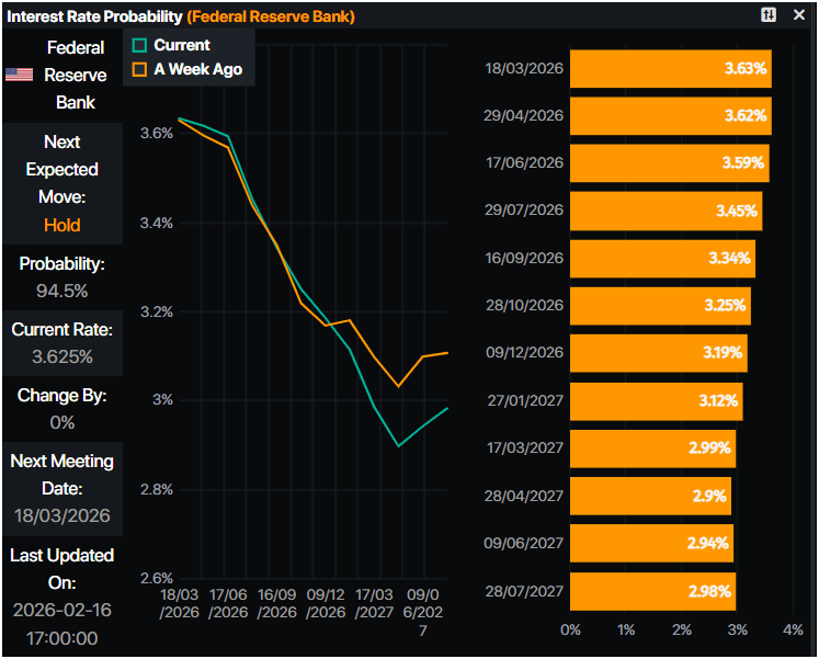 Los mercados monetarios anticiparon que la Reserva Federal mantendrá las tasas estables en la reunión del 18 de marzo, según datos de Prime Market Terminal.