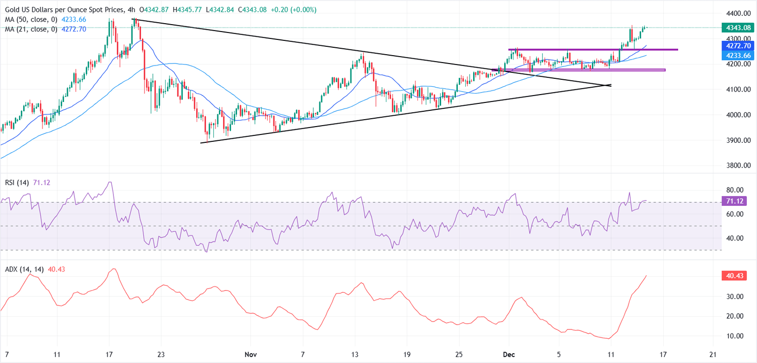 Análisis técnico: Los alcistas apuntan a una ruptura por encima de 4.350$