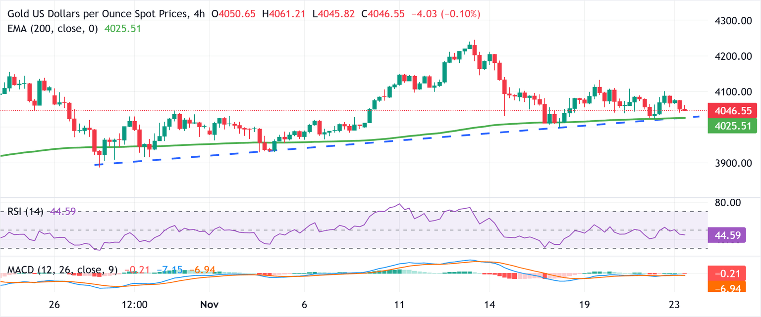 Desde una perspectiva técnica, el par XAU/USD, hasta ahora, ha logrado defender una línea de tendencia ascendente que se extiende desde finales de octubre. El mencionado soporte está actualmente ubicado cerca de la región de 4.030$ y ahora coincide con la media móvil exponencial (EMA) de 200 períodos en el gráfico de 4 horas. Esto, a su vez, debería actuar como un punto clave, que, si se rompe de manera decisiva, podría hacer que el precio del Oro sea vulnerable a debilitarse aún más por debajo de la marca psicológica de 4.000$ y probar el mínimo de la semana pasada, alrededor de la zona de 3.968-3.967$. La trayectoria a la baja podría extenderse aún más hacia el soporte de 3.931$ en ruta hacia la marca de 3.900$ y el mínimo de finales de octubre, alrededor de la región de 3.886$.