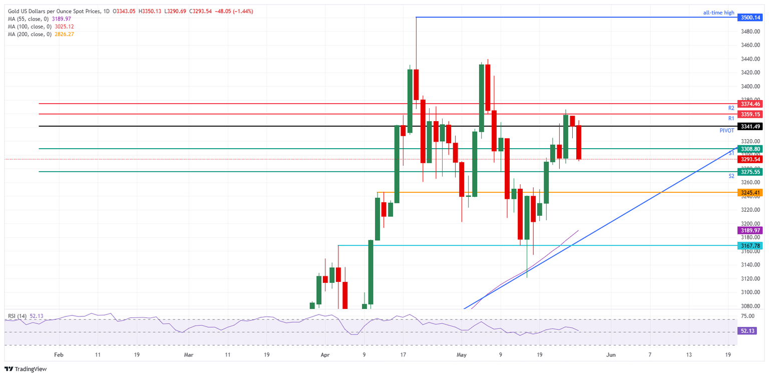 - El precio del Oro cae firmemente por debajo de los 3.300$ el martes, incapaz de encontrar un soporte rápido.