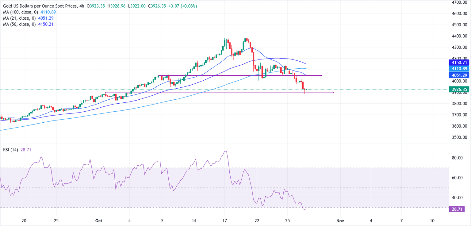 Análisis técnico: El XAU/USD cae por debajo de 4.000$ a medida que la presión bajista se fortalece
