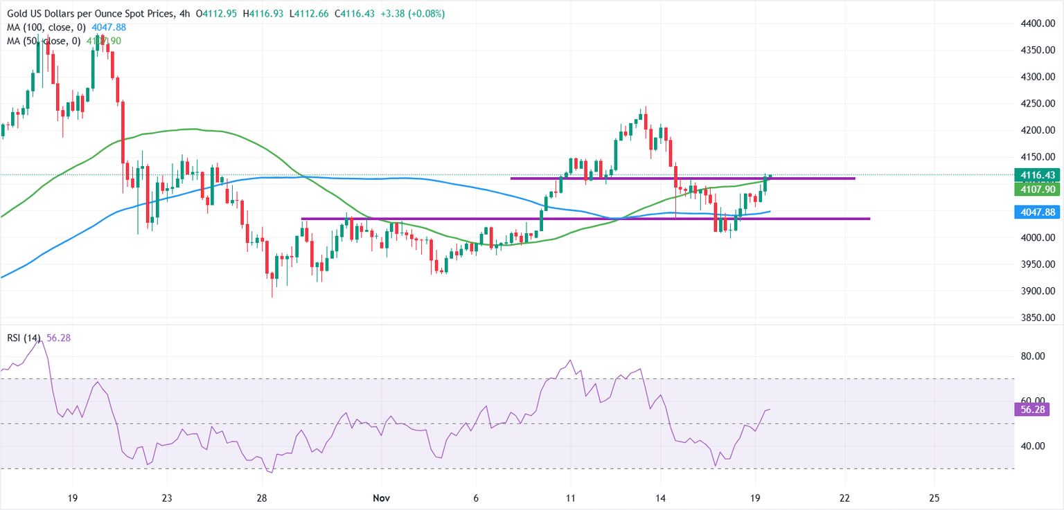 Desde una perspectiva técnica, el Oro continúa atrayendo compradores en caídas dentro de la tendencia alcista predominante. En el gráfico de 4 horas, los precios ahora se cotizan nuevamente por encima de la Media Móvil Simple (SMA) de 100 períodos, mejorando el sesgo alcista a corto plazo, mientras que el último rebote ha llevado al XAU/USD a una prueba de la SMA de 50 períodos, que se alinea estrechamente con la zona de resistencia de 4.100$-4.120$. Una ruptura sostenida por encima de esta área reforzaría el impulso alcista, abriendo la puerta hacia 4.150$ inicialmente, seguido por la región de 4.200$.