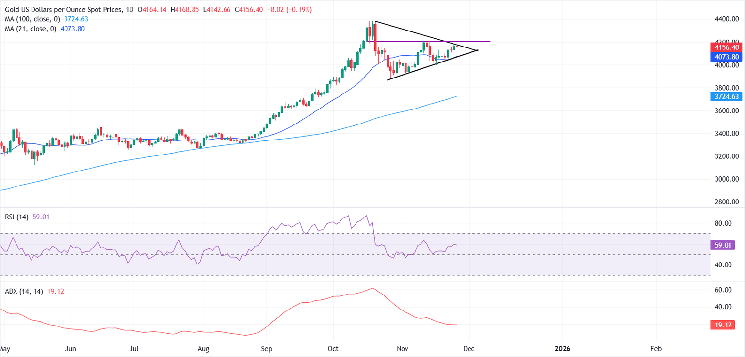 - Técnicamente, el XAU/USD está probando el borde superior de un triángulo simétrico, con 4.200$ como el próximo objetivo al alza.