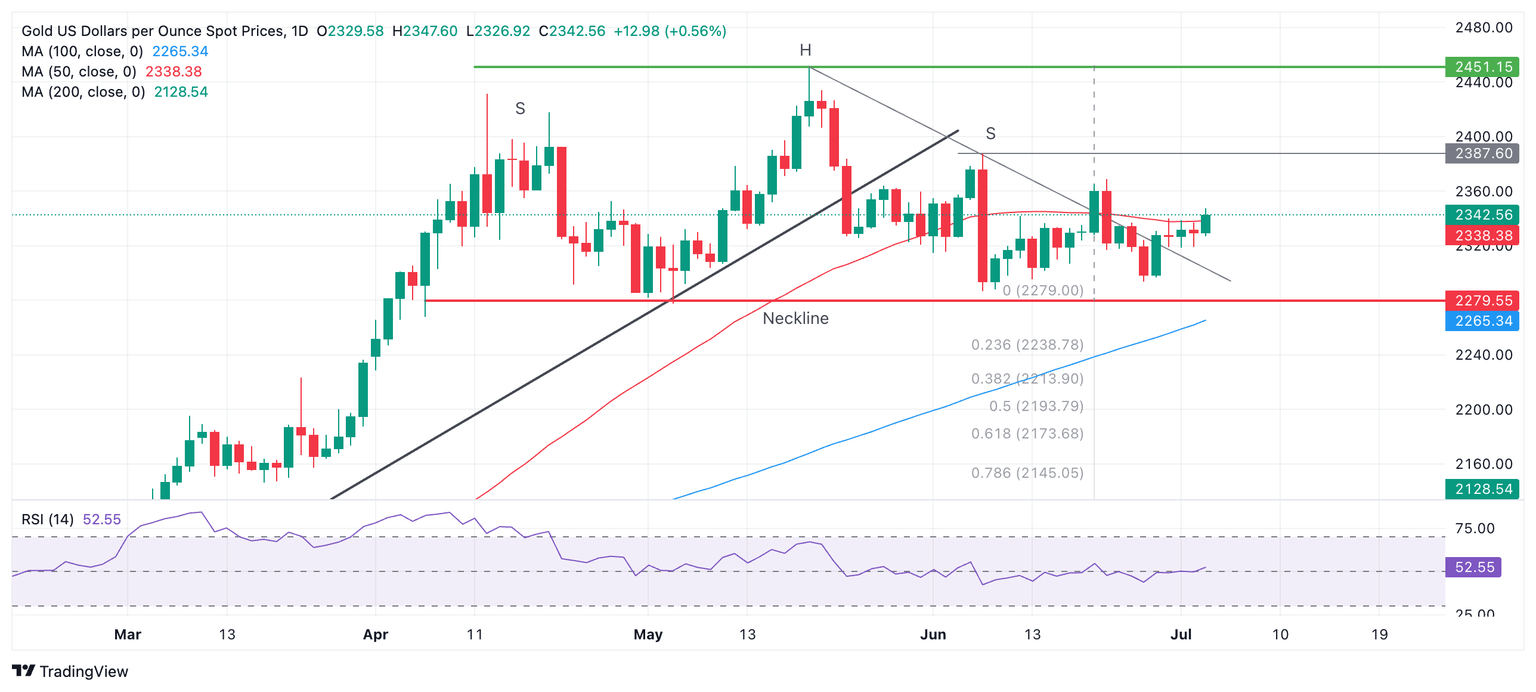 - El XAU/USD cotiza por encima de 2.340$, aumentando las apuestas alcistas de una recuperación a corto plazo.