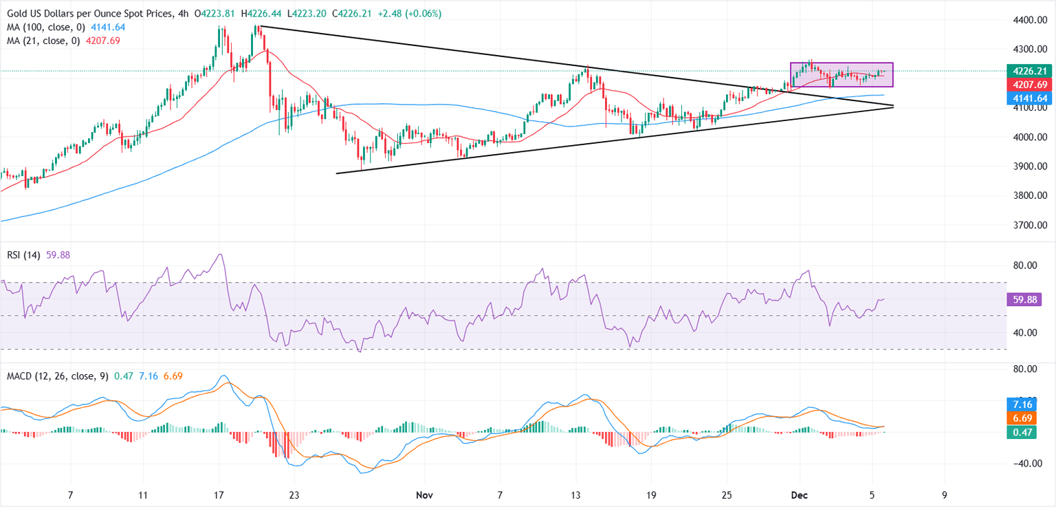Análisis técnico: XAU/USD necesita una ruptura por encima de 4.250 para recuperar tracción