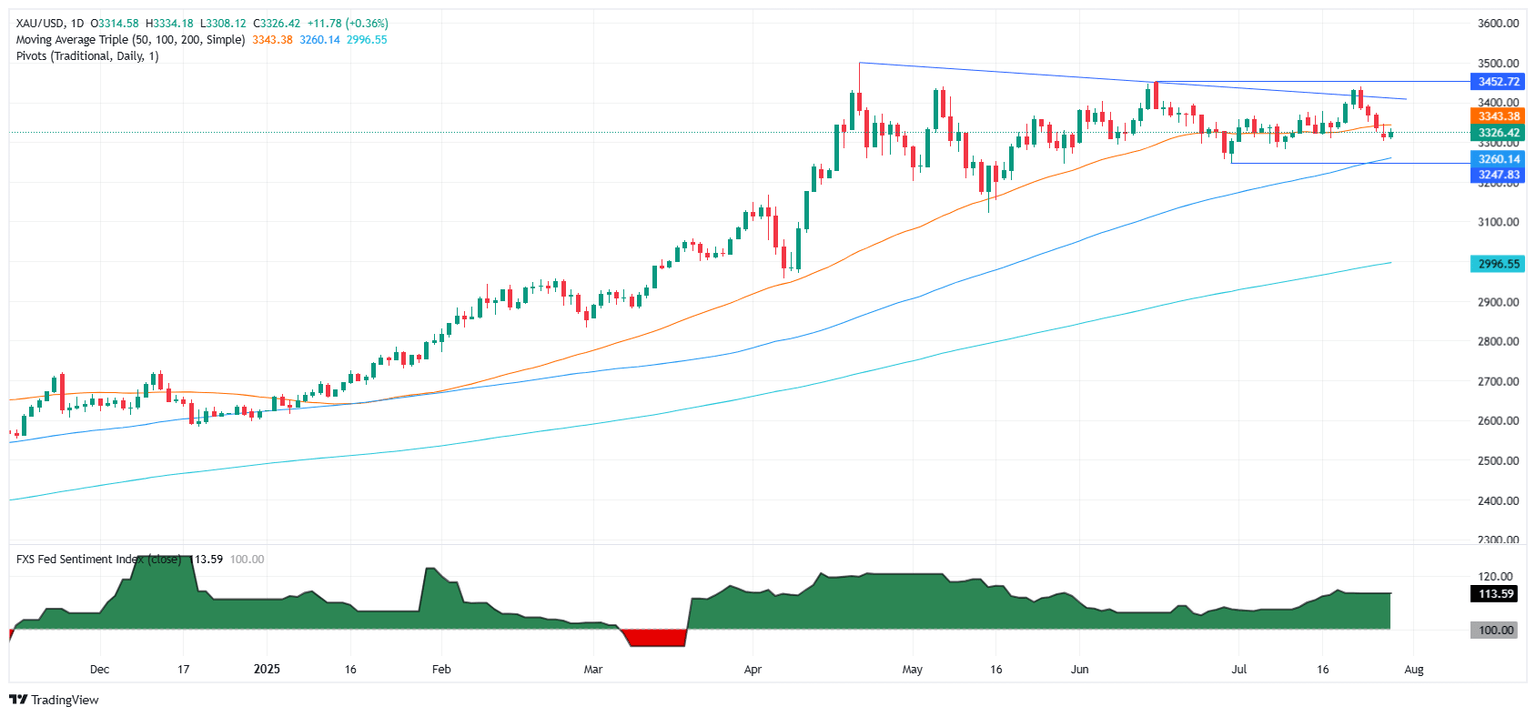 Perspectiva técnica del XAU/USD: El oro rebota por encima de 3.300$, por debajo de la confluencia de las SMAs de 20 y 50 días
