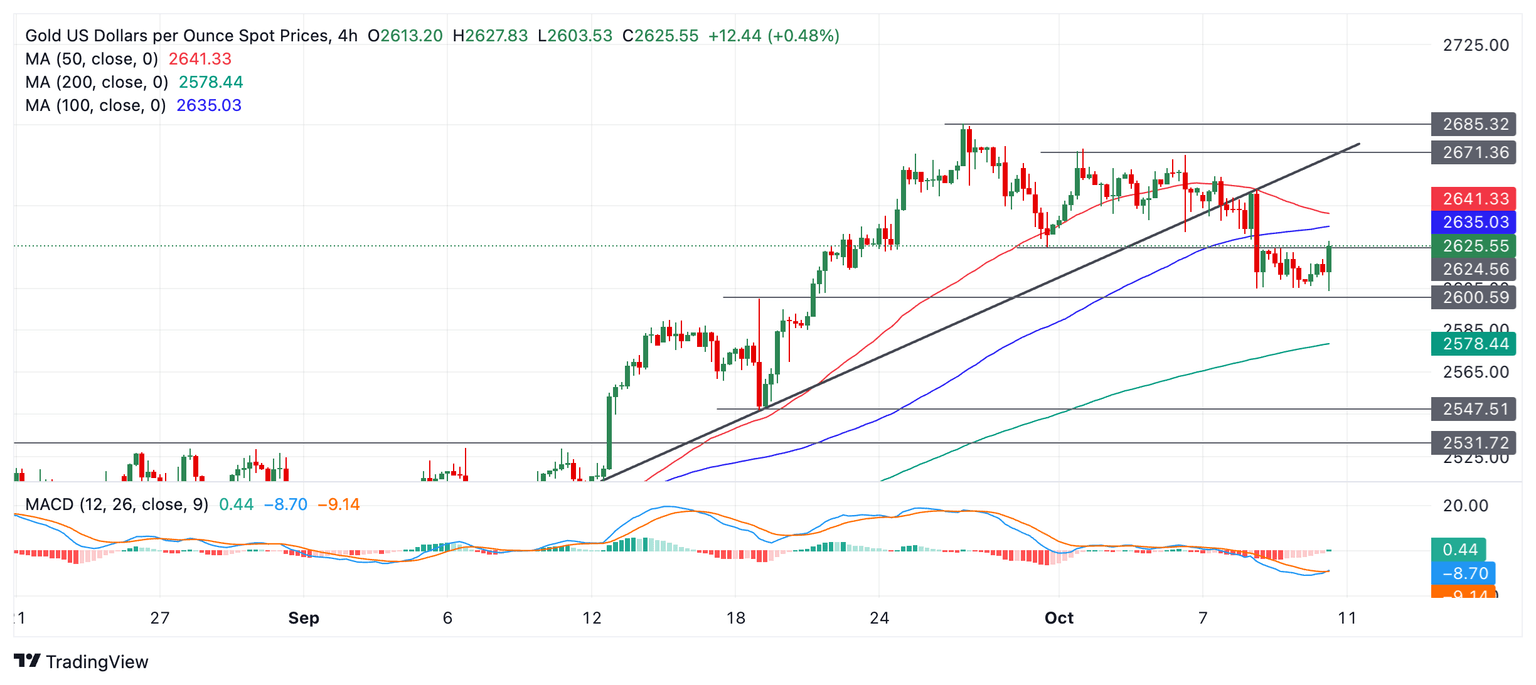 El Oro rebota desde el soporte justo por encima de la marca psicológica de 2.600$ y aunque está subiendo, probablemente se mantenga, en balance, en una tendencia bajista a corto plazo, sin embargo, el sesgo no es fuerte en ninguna dirección.