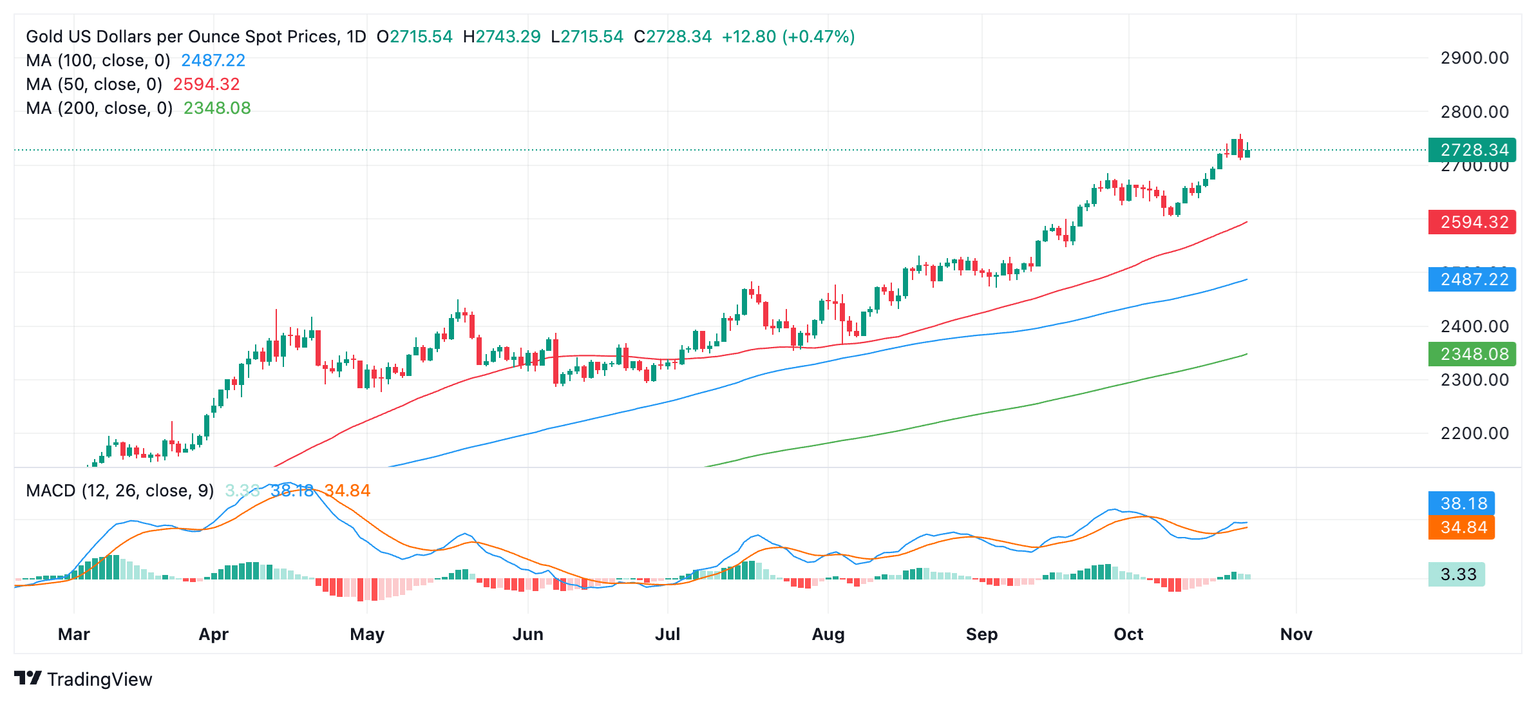 El Índice de Fuerza Relativa (RSI) ha retrocedido desde la sobrecompra, aconsejando a los tenedores de posiciones largas que cierren sus posiciones largas y abran cortas. Es posible que esto pueda anunciar una corrección más profunda, sin embargo, dada la fuerte tendencia alcista, no es suficiente por sí solo para estar seguro. El soporte se encuentra en 2.750$, 2.700$ (niveles clave de número redondo) y 2.685$ (máximo de septiembre).