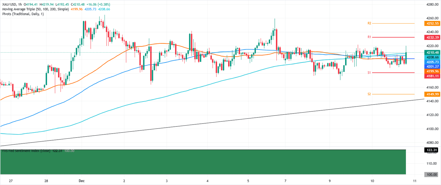 Inicialmente, el XAU/USD se dirigió hacia el sur, pero a medida que la decisión fue percibida como moderada, el Oro comenzó a recuperarse, alcanzando un máximo diario de 4.219$.