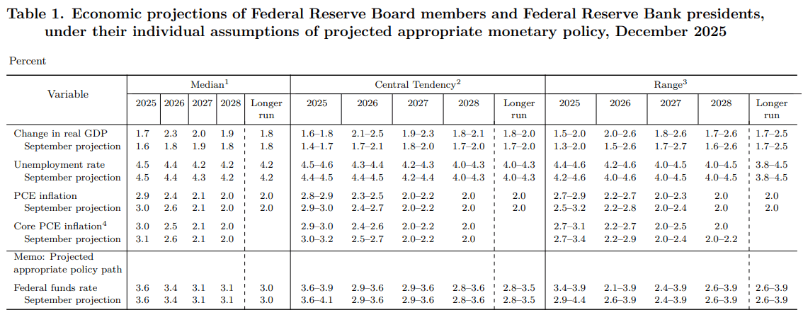 El miércoles, la Fed recortó las tasas al 3.50%-3.75% como se esperaba y mantuvo la puerta abierta para solo un recorte de tasas en 2026. La votación del Comité Federal de Mercado Abierto (FOMC) fue de 9-3, con el Gobernador Miran votando a favor de un recorte de 50 puntos básicos, mientras que Jeffrey Schmid y Austan Goolsbee votaron por mantener las tasas sin cambios.