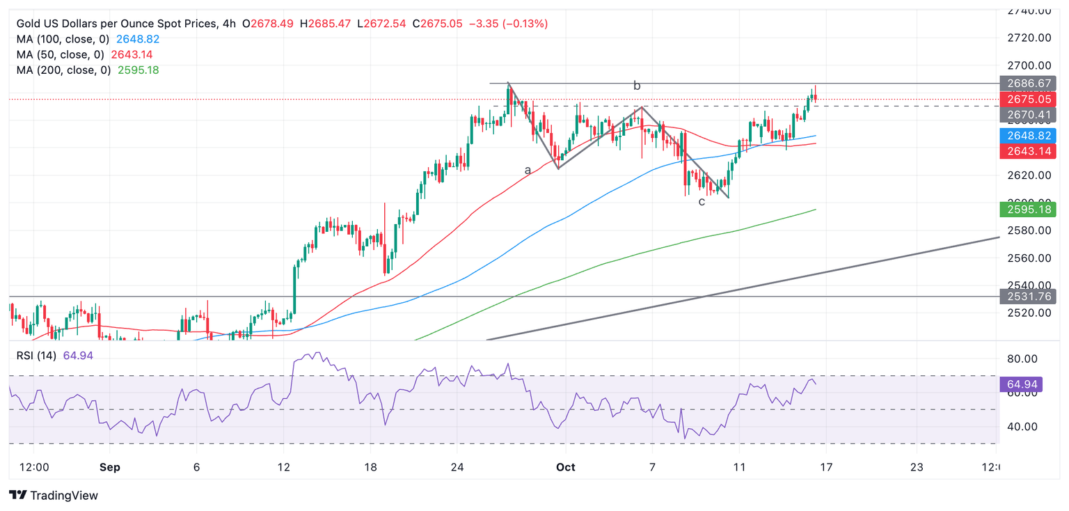El Oro ha roto por encima de la resistencia clave en torno a 2.670$ y se está acercando al máximo histórico de 2.685$. Una ruptura por encima de ese nivel indicaría una continuación hacia el próximo objetivo en 2.700$ – un número redondo y nivel psicológico.