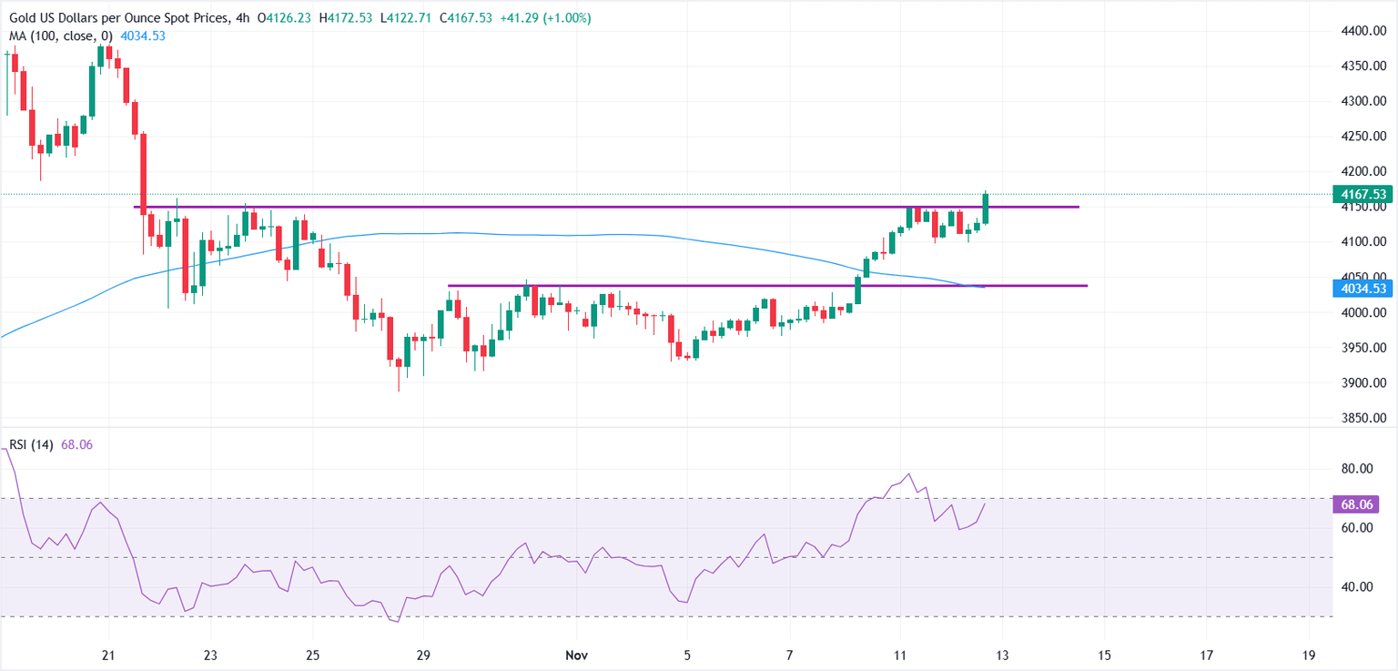 Análisis técnico: El XAU/USD rompe por encima de 4.150$