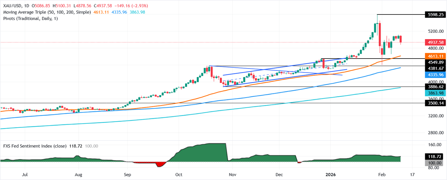 Si el XAU/USD cierra a nivel diario por debajo de 4.900$, se abre la puerta a un retroceso por debajo de 4.800$. Después de esto, el siguiente soporte es la SMA de 50 días en 4.602$.
