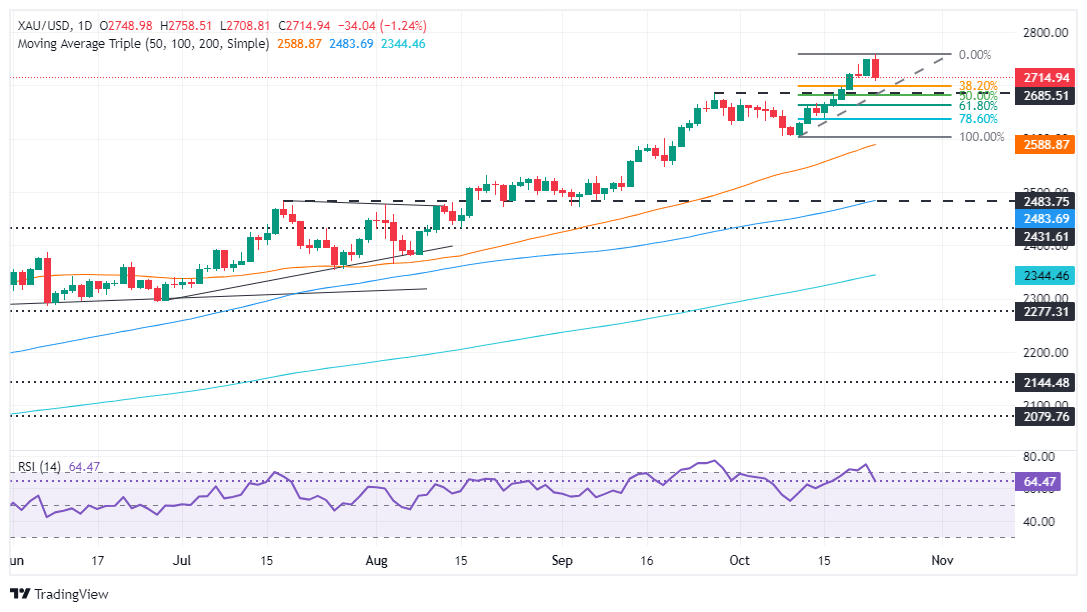 Perspectiva técnica del XAU/USD: El precio del oro retrocede por debajo de 2.720$