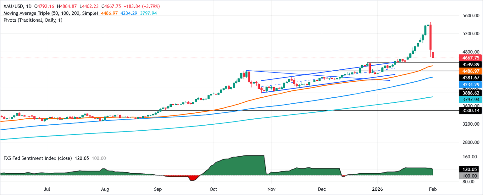 - A pesar de una caída del 14% desde el viernes, el metal precioso se mantiene por encima del soporte técnico clave mientras la tendencia alcista a largo plazo se mantiene intacta.