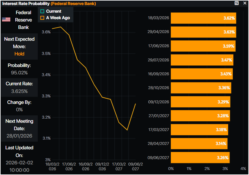 - El Oro cae más del 4% en medio de apuestas de recortes de tasas alteradas tras la nominación del presidente Trump de Kevin Warsh como próximo presidente de la Fed.
