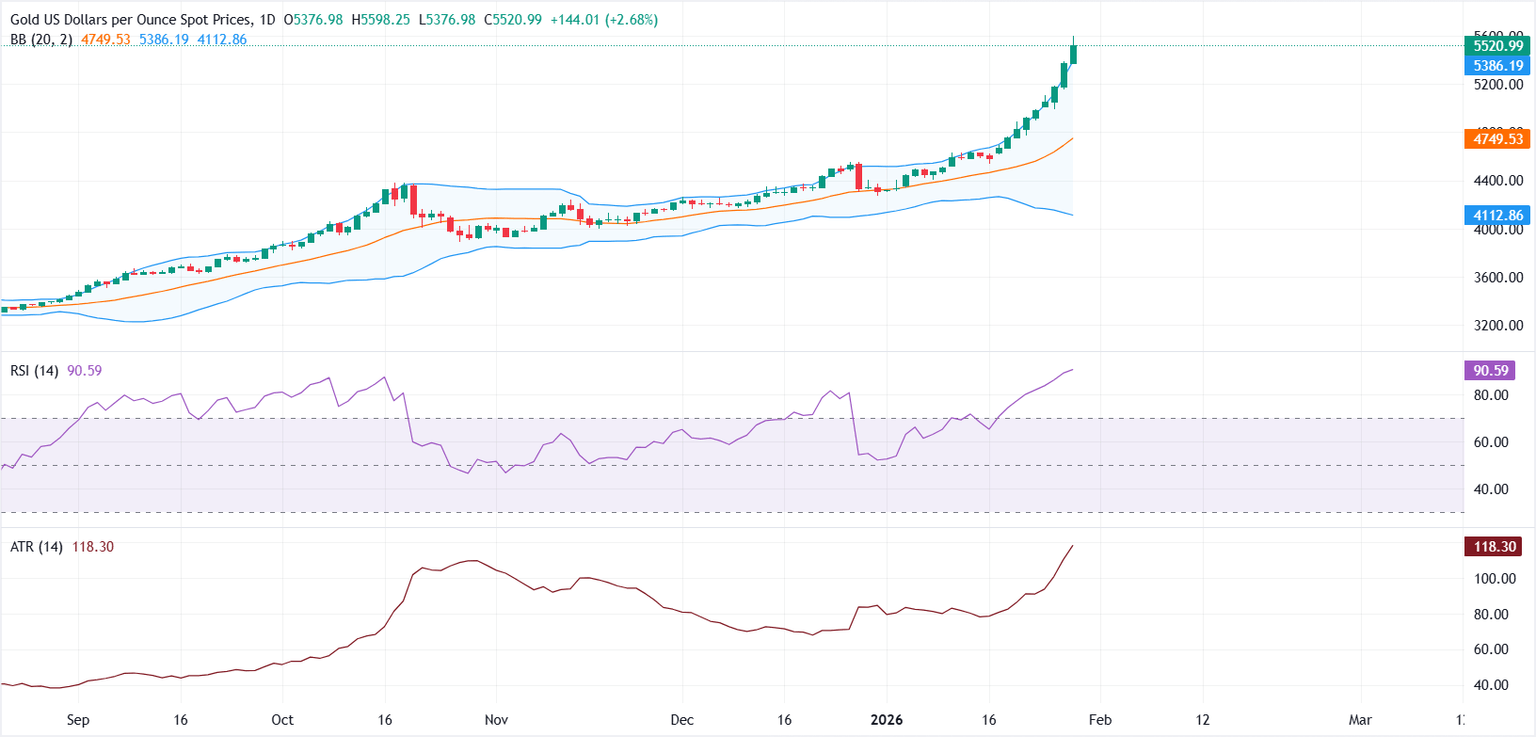 - El XAU/USD superó brevemente los 5.598$ antes de suavizarse en medio de una creciente volatilidad.