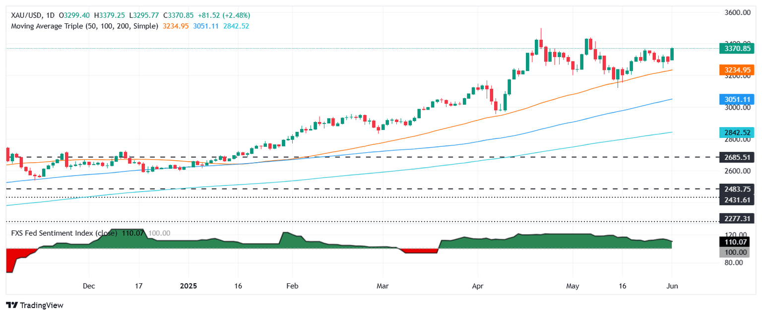 Perspectiva técnica del XAU/USD: El Oro se dispara por encima de 3.350$ con los alcistas apuntando a 3.400$