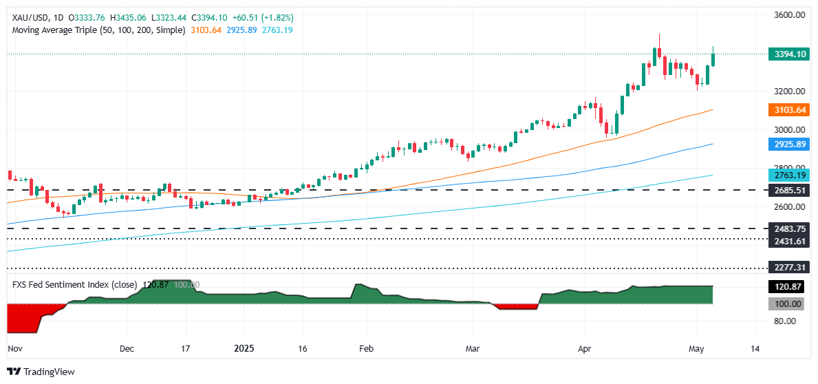Una vez que el XAU/USD supere la marca de $3.400, una nueva prueba de $3.450 está en el horizonte. La siguiente parada sería el máximo histórico de $3.500. Por el contrario, si el precio del Oro cae por debajo de $3.400, el siguiente soporte sería la cifra de $3.350. En caso de una mayor debilidad, la siguiente línea de defensa de los compradores sería $3.300.