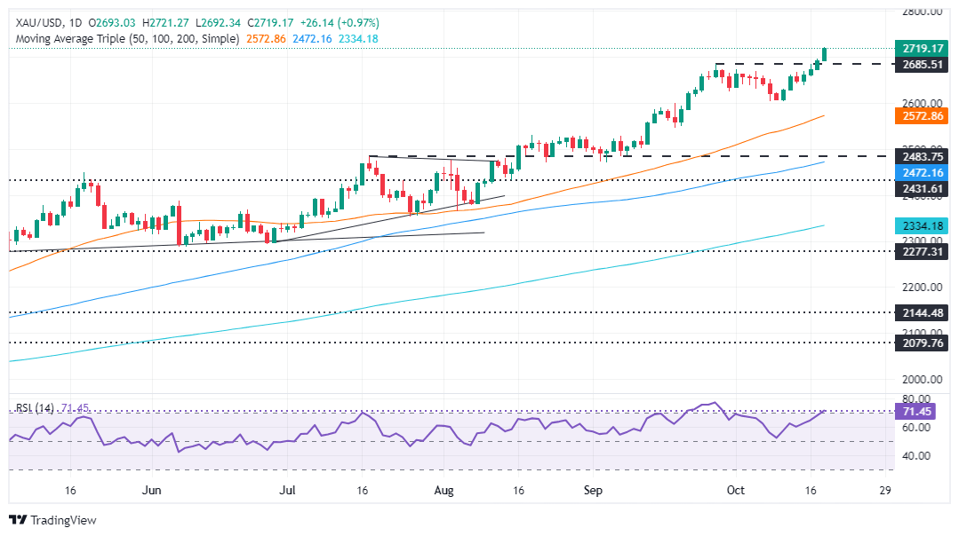 Perspectiva técnica del XAU/USD: El precio del oro sube por encima de los 2.700$, con la vista puesta en los 2.750$