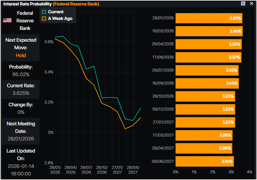 El jueves, la agenda económica incluirá las solicitudes iniciales de subsidio por desempleo para la semana que finaliza el 10 de enero, con estimaciones de que 215K estadounidenses solicitaron beneficios por desempleo, por encima de los 208K observados en la semana anterior. Además, los índices de manufactura de los bancos regionales de la Fed verán la luz del día.