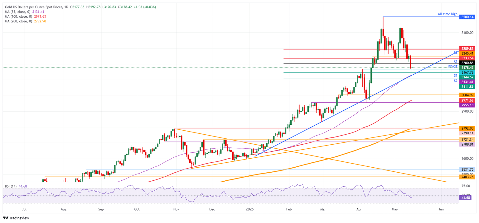 El Oro (XAU/USD) invierte su rumbo y se dirige hacia 3.192$ al momento de escribir este jueves, con tensiones en aumento en torno a las conversaciones entre Ucrania y Rusia que se llevan a cabo en Turquía. Anteriormente, el Oro cayó tras los titulares del presidente de Estados Unidos (EE.UU.), Donald Trump, que llevaron a los operadores a asegurar más beneficios y vender más participaciones en su tenencia de Oro. En sus últimos comentarios el jueves durante una visita al Medio Oriente, Trump dijo que las conversaciones con Irán sobre un acuerdo nuclear son posibles, informa CNN. Trump agregó que tanto Siria como Yemen merecen una oportunidad, lo que se considera un gran paso para desescalar las tensiones en el Medio Oriente.