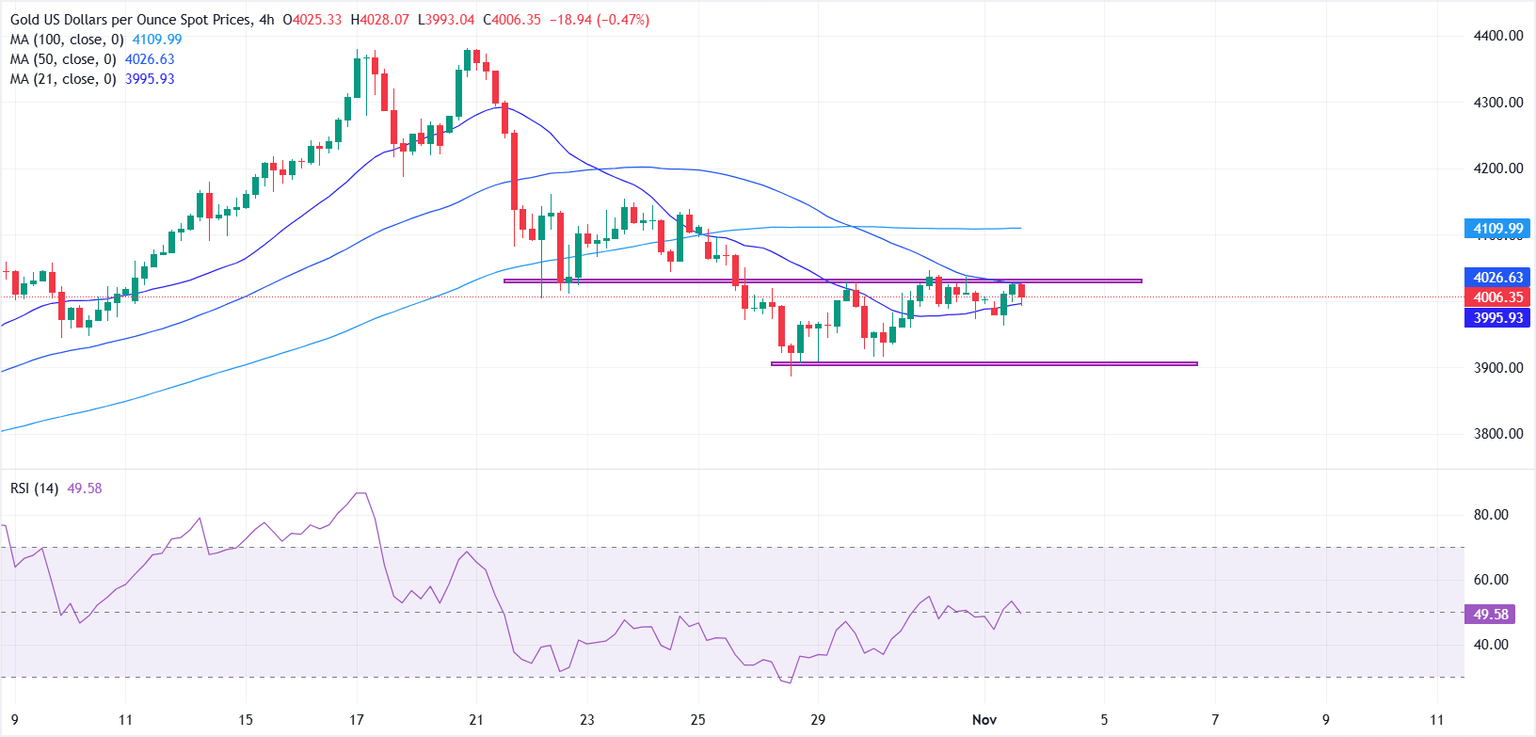 Análisis técnico: XAU/USD se mantiene estable cerca de 4.000$ en medio de un momentum neutral