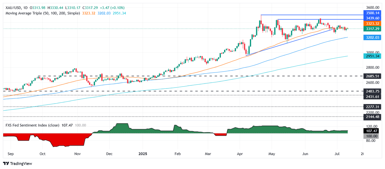 Perspectiva técnica del XAU/USD: El precio del Oro se mantiene estable cerca de 3.300$