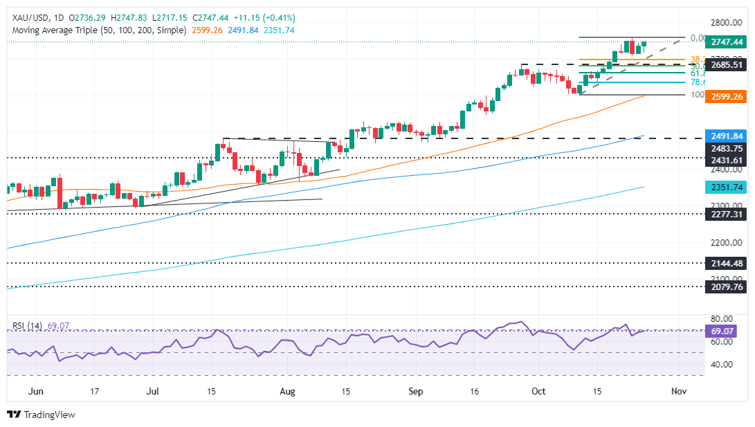 Si el XAU/USD supera los 2.750$, el próximo nivel de resistencia será el máximo del año hasta la fecha (YTD) en 2.758$. Una vez superado, el próximo objetivo sería 2.800$.