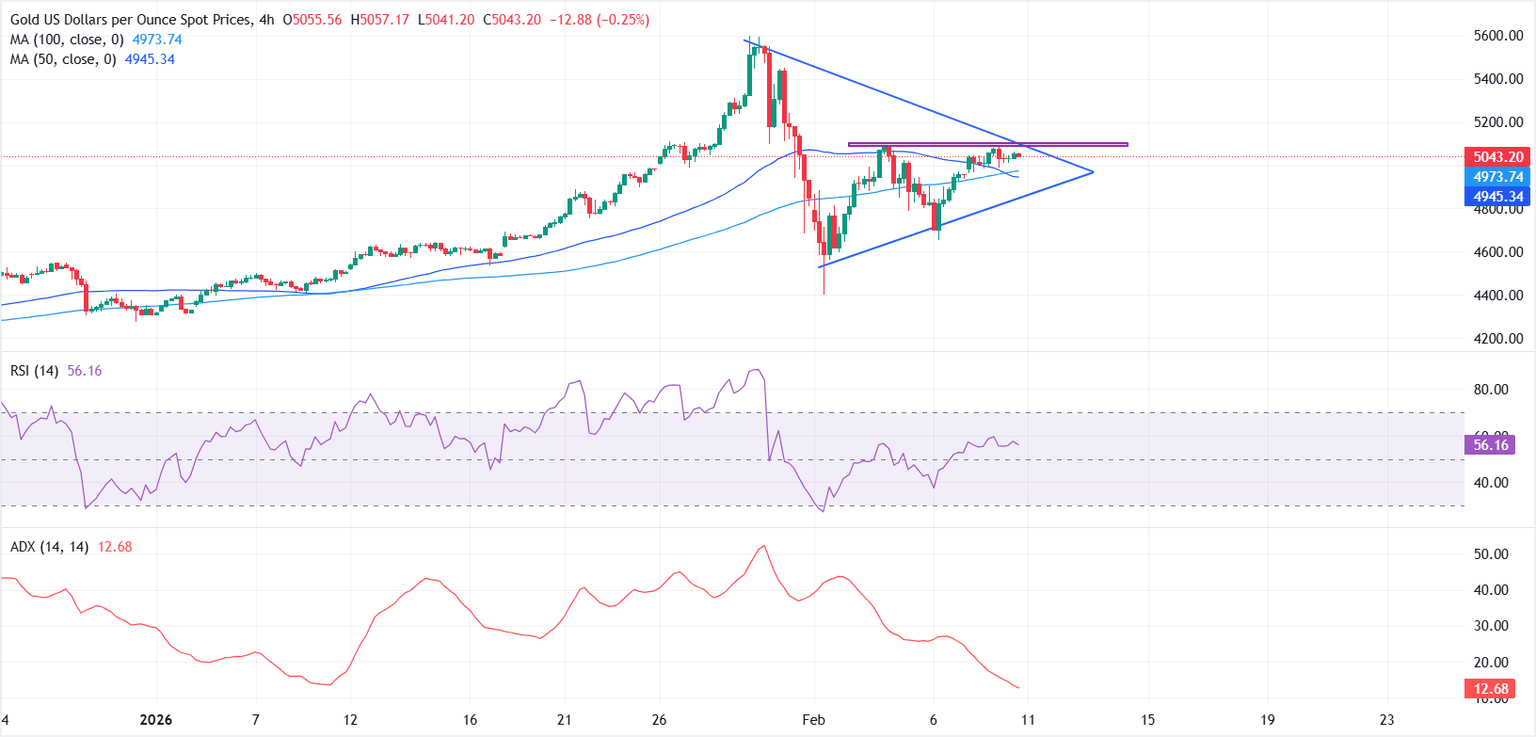 El Oro (XAU/USD) lucha por encontrar dirección el martes, con la actividad comercial general moderada en ausencia de nuevos catalizadores que muevan el mercado. Al momento de escribir, el XAU/USD cotiza alrededor de 5.043$, manteniéndose firme tras caer brevemente por debajo del nivel psicológico de 5.000$ durante la primera sesión asiática.
