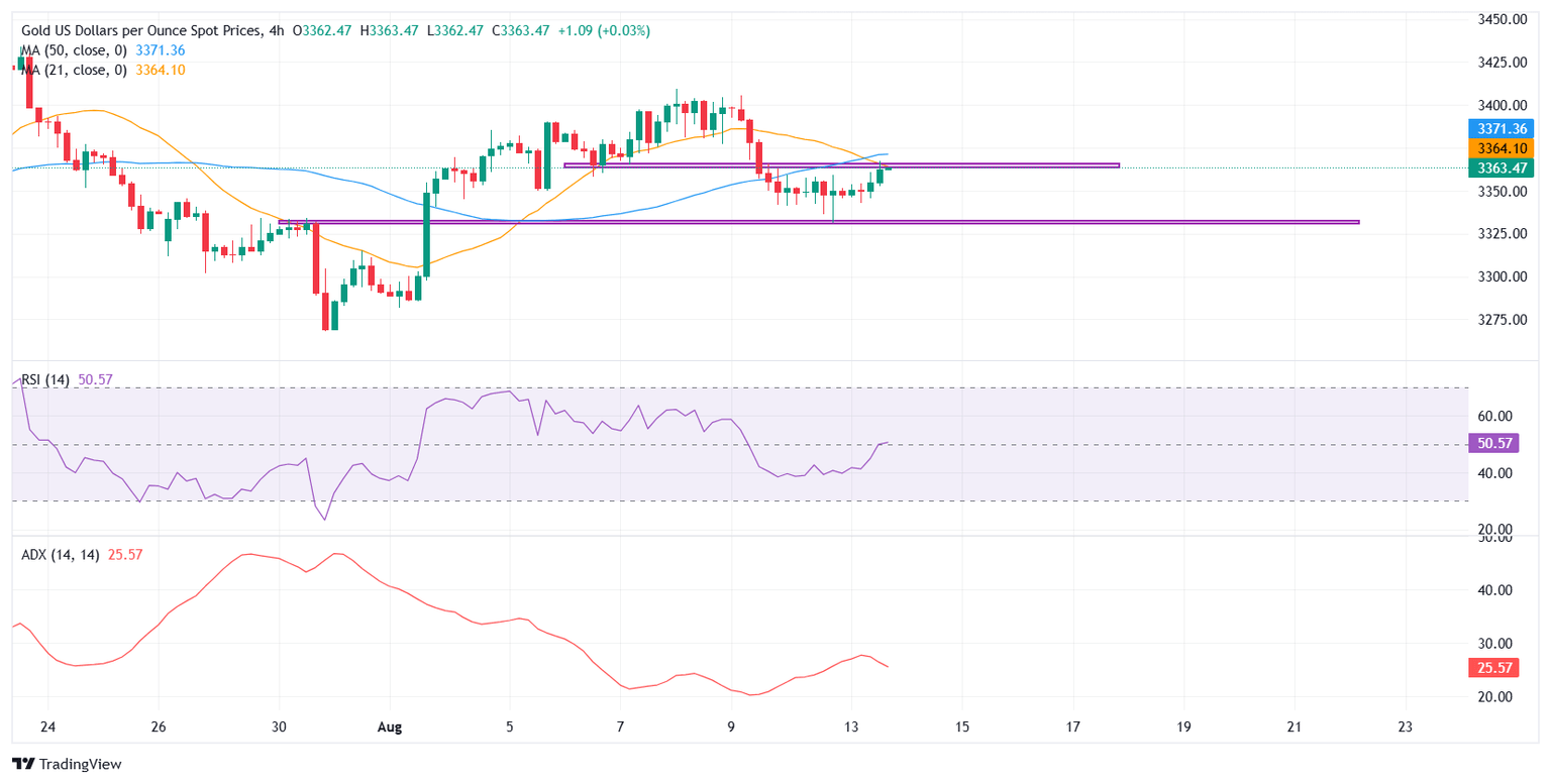 El sentimiento de los inversores sigue siendo en general constructivo, con las acciones globales cerca de máximos históricos. El optimismo sobre una extensión de 90 días que pausa los aranceles más altos entre EE.UU. y China, y la anticipación de las conversaciones de paz entre EE.UU. y Rusia el viernes en Alaska podrían pesar sobre el Oro, manteniendo el impulso alcista bajo control a medida que un tono de riesgo moderado atenúa la demanda de refugio seguro.
