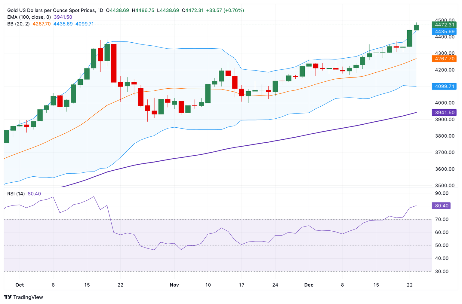 El reciente breakout alcista podría abrir la puerta a un movimiento hacia la marca psicológica de 4.400$. Cualquier compra de continuación por encima de este nivel podría allanar el camino hacia 4.450$.
