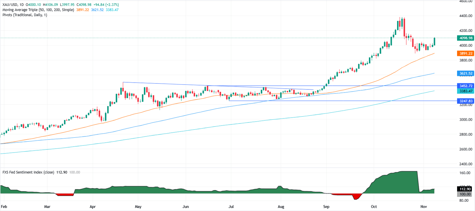 Perspectiva técnica: El precio del Oro se dispara, los operadores apuntan a 4.100$
