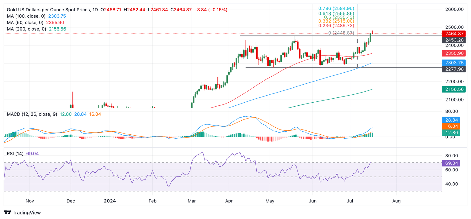 El Oro (XAU/USD) ha alcanzado un nuevo máximo histórico de 2.482$ durante la sesión asiática del miércoles. Las ganancias del metal amarillo se deben a una mezcla de expectativas firmes de que las tasas de interés en EE.UU. caerán en septiembre y una creciente demanda de compradores en la Bolsa de Futuros de Shanghái (SHFE), según analistas del banco de inversión canadiense TD Securities.