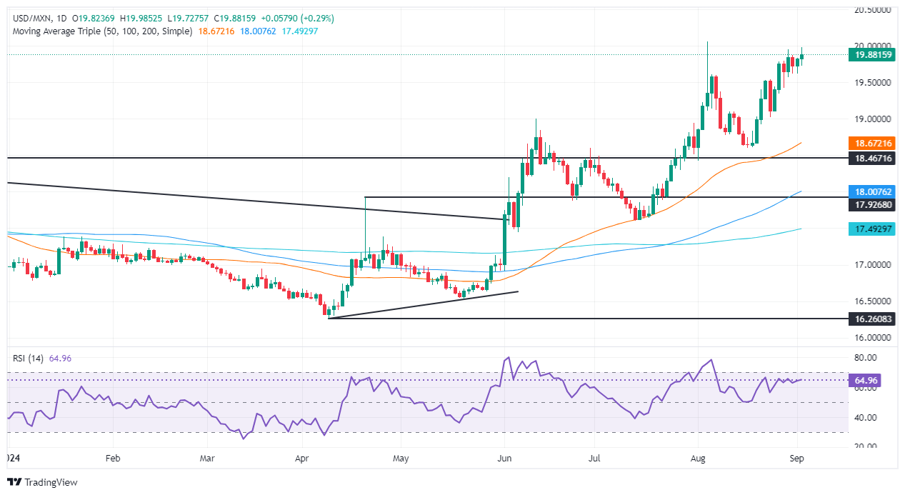 Perspectiva técnica: El Peso mexicano se desploma mientras el USD/MXN sube por encima de 19.80