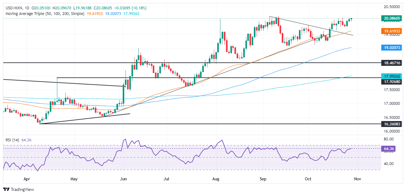 Perspectiva técnica del USD/MXN: El Peso mexicano se desploma mientras el USD/MXN supera los 20.00