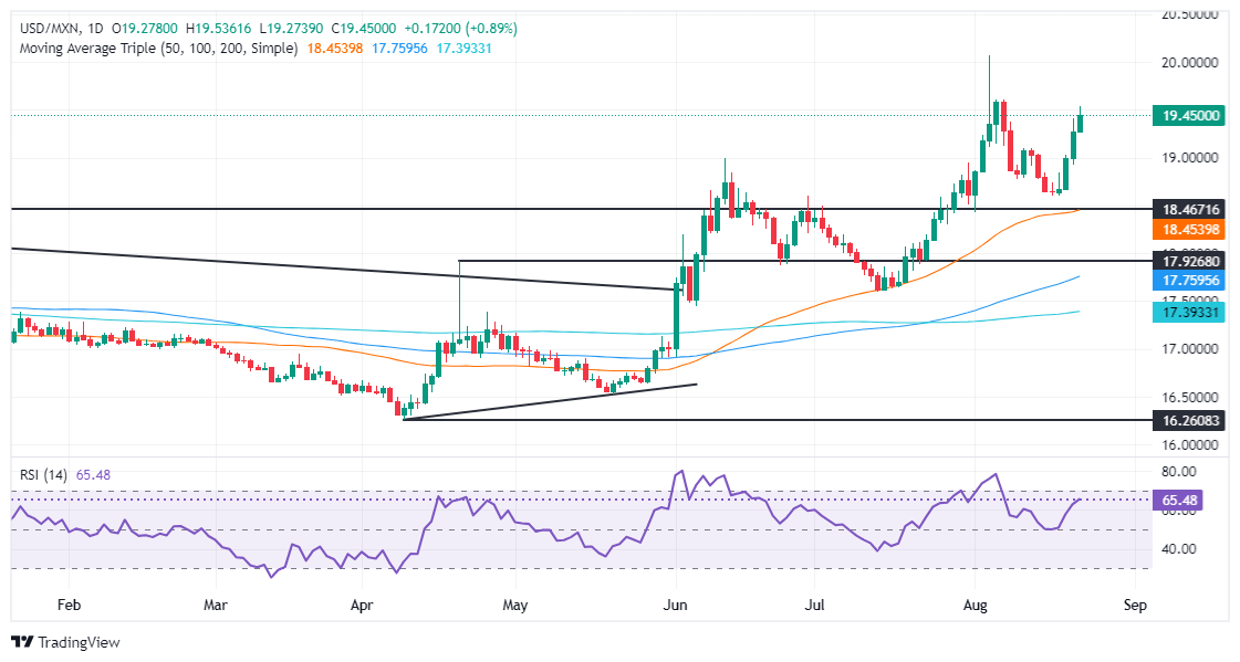Perspectiva técnica: El Peso mexicano presionado mientras el USD/MXN sube hacia 19.50