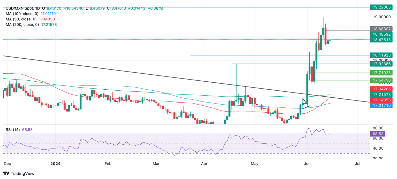 - El USD/MXN sigue retrocediendo en medio de una tendencia alcista a corto y mediano plazo.